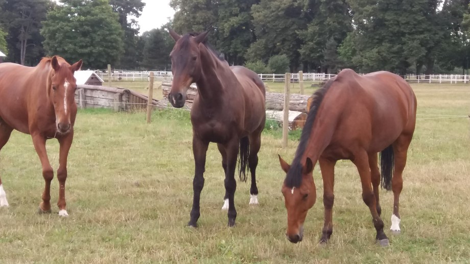 Petit tour à Jardy pour changer des promenades sur les bords de Seine. Les chevaux sont au paddock, nous essayons de les reconnaitre mais c’est difficile, tous les bais se ressemblent. Notre jument préférée est trop loin sans doute pour que nous repérions les traces caractéristiques sur son flanc gauche. Nous avons eu beau froisser le papier de notre sachet de pommes, elle n’est pas venue. Ce sont ses copains qui ont profité des fruits !