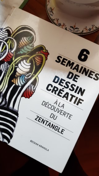 J’ai découvert le zentangle sur le blog de MHF, qui anime ce DéfiLivres et pratique cette technique de dessin.