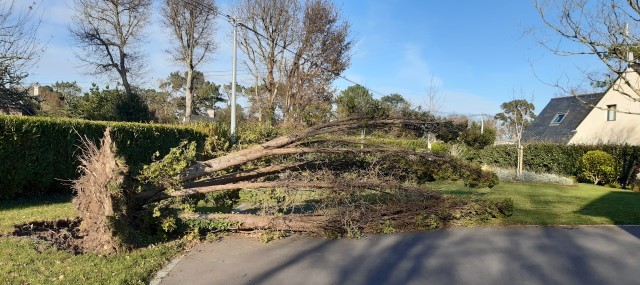 Chez les voisins aussi, il y a eu de la casse. Depuis notre arrivée, ce ne sont que bruit de tronçonneuses et passage de remorques bien chargées de débris et branchages en route pour la déchetterie. Cette tempête a provoqué beaucoup de dégâts.