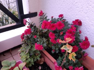 Ceux qui apprécient ces conditions climatiques, ce sont mes chrysanthèmes qui ont fleuri depuis seulement deux ou trois jours, alors qu’à la Toussaint, leurs boutons restaient obstinément fermés.
