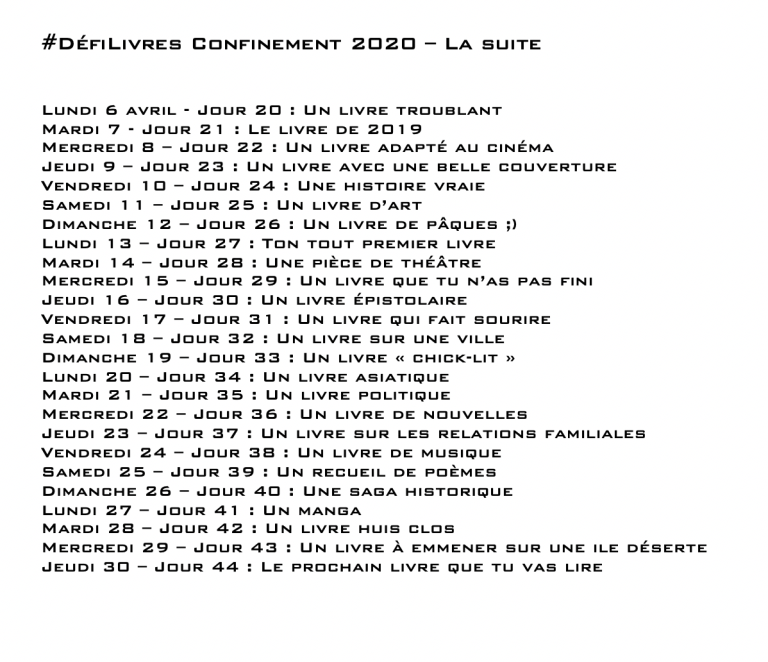 Un livre que j’ai eu la chance d’emprunter avant le confinement et qui est donc chez moi pour un bon moment, tant que la médiathèque est fermée !